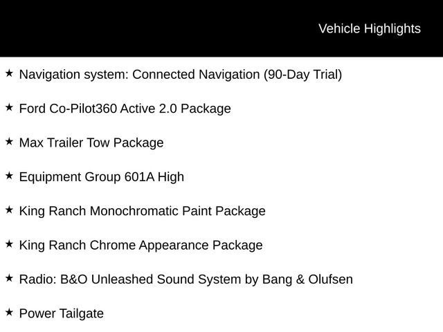 Step inside the cabin, and you'll be enveloped in the luxurious comfort of the King Ranch leather-trimmed seats. The interior work surface and multi-contour seats with Active Motion provide unparalleled convenience and support, ensuring you arrive at your destination refreshed and ready to tackle any task.
