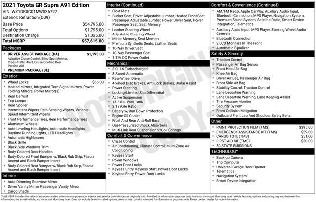 CarBravo 2021 Toyota GR Supra A91 Edition