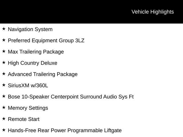 Boasting a stunning Iridescent Pearl Tricoat exterior and a wealth of premium features, the Tahoe High Country is a true standout in its class. Key highlights include: