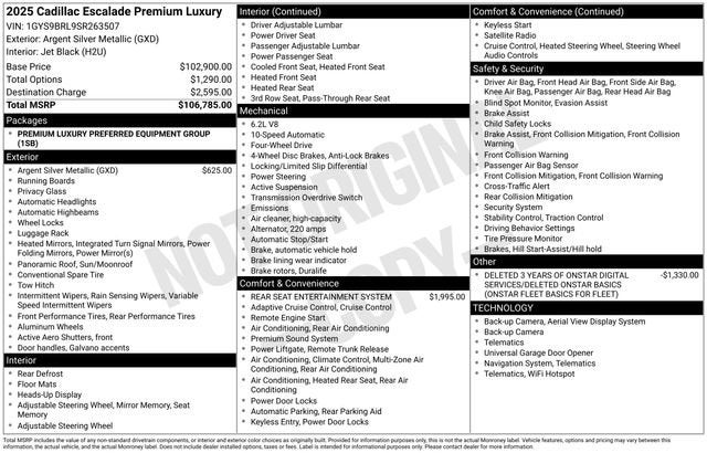 Experience the epitome of Cadillac craftsmanship and engineering in the 2025 Escalade Premium Luxury. This exceptional SUV is waiting to elevate your driving experience. Schedule a test drive today and discover the true meaning of luxury on the road.